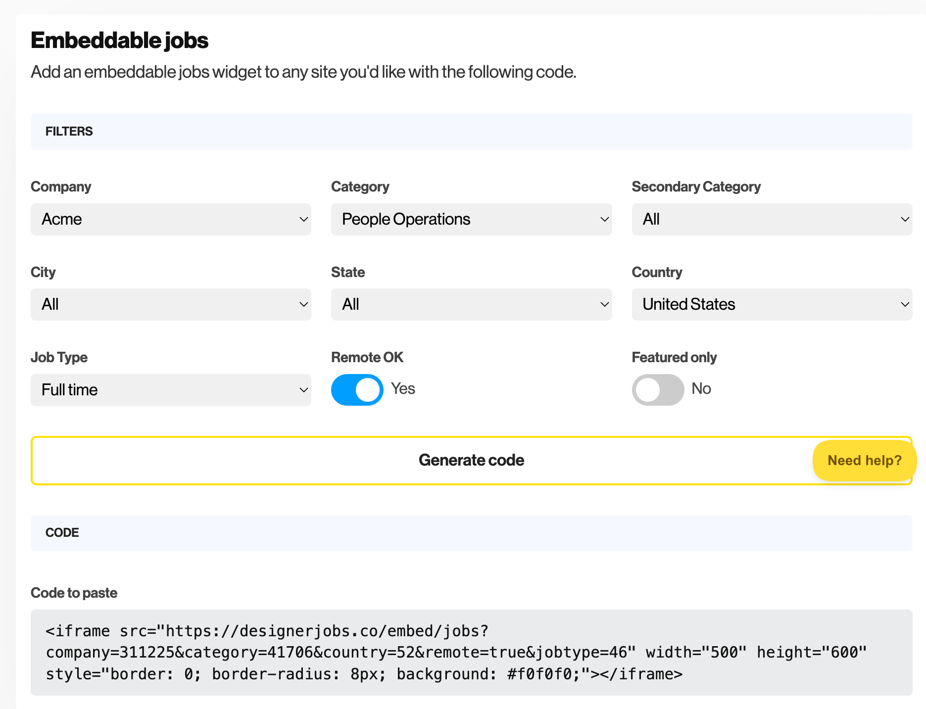 With Niceboard’s job board solution, you can simply select which jobs you want to display (by company, category, location, job type, and more), and implement the code snippet anywhere on your website.
